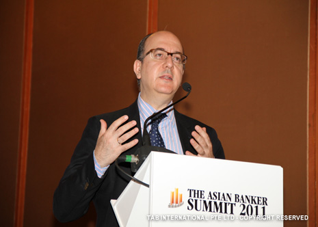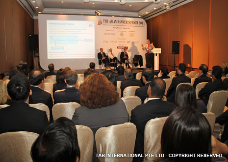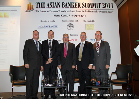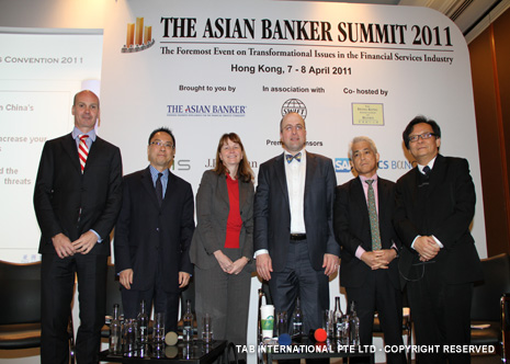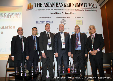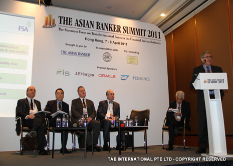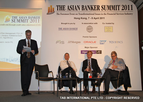 Colin Lawrence, Director, Prudential Risk Management, FSA, UK, Masamichi Kono, Vice-Commissioner, International Affairs, Financial Services Agency, Japan, Michael Zerbs, President, Algorithmics, José María Roldán, Director General for Banking Regulation of the Banco de España and David Millar, International Resource Director, The Asian Banker |